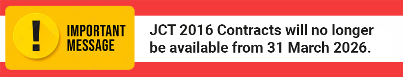 All documents within the JCT 2016 Edition of contracts are available via JCT On Demand. Use the links below or the main navigation on the left to browse the JCT Online Store. Where a product is available via the JCT On Demand service, the JCT On Demand version will be the default when you add it to your basket. If you would prefer a hardcopy document (i.e. a physical copy that is delivered to you by mail), select 'Hardcopy' from the format box on the product page.
